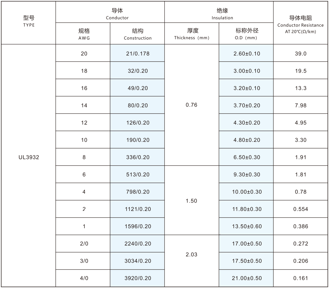 The conductor is made of single or twisted 26-4/0AWG tin plated or bare copper wire