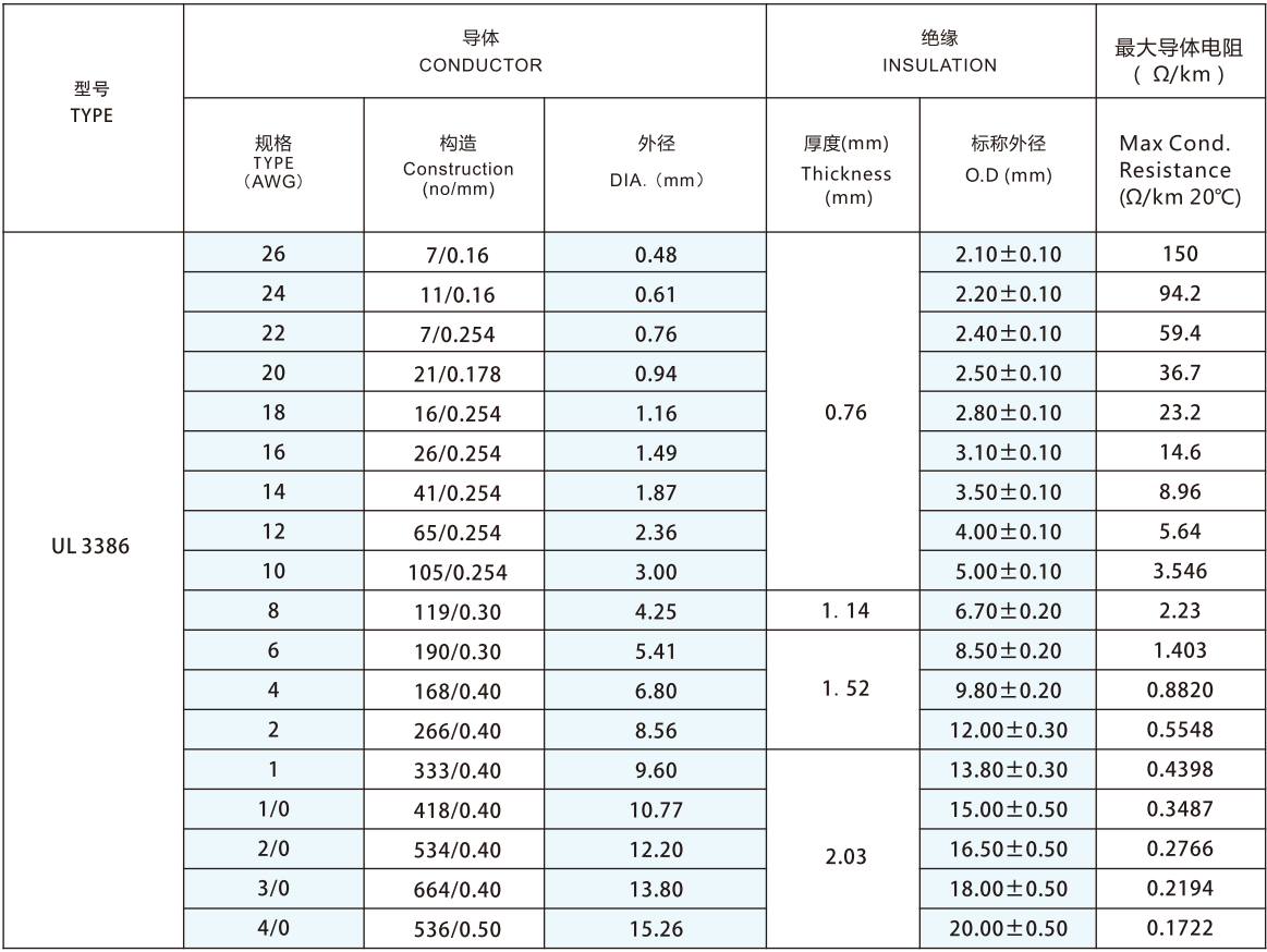 The conductor is made of single or twisted 30-4/0AWG tinned or bare copper wire