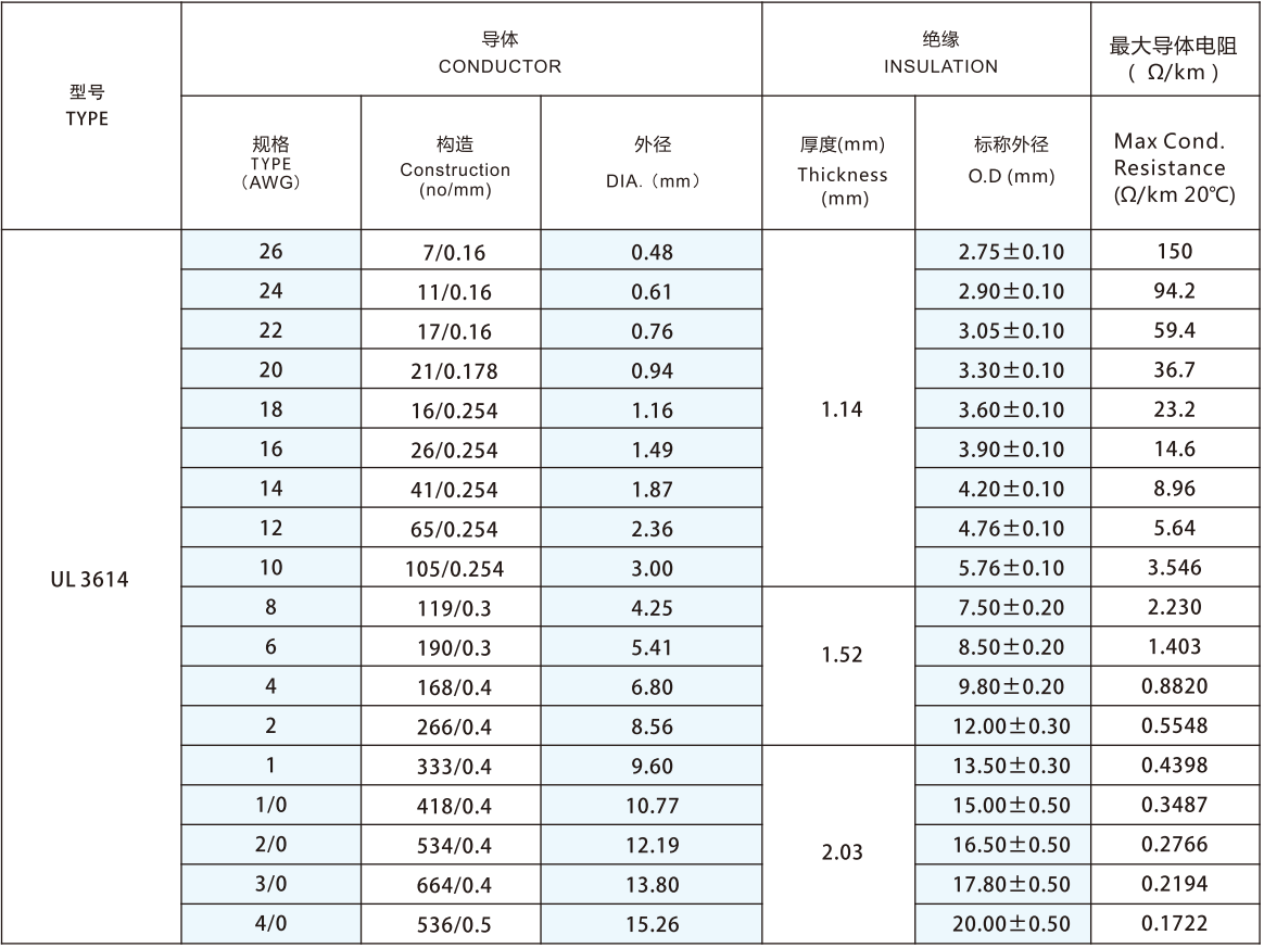 Solid or Stranded, tinned or bare copper conductor 26-4/0AWG