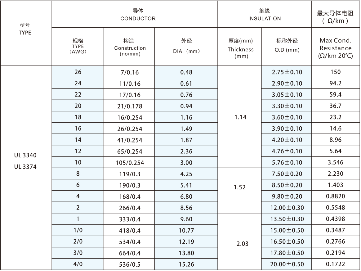 Use single or twisted 26-4/0AWG tinned or bare copper wire for conductors